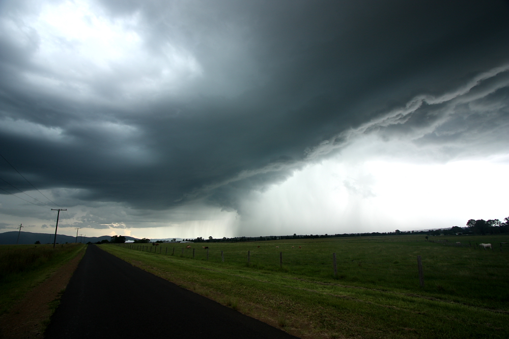 I moved N of Esk as I could see new development to the N of there. Some very large, menacing bases and copious pulsing CGs indicated that this was going to be a nasty storm. This is from just N of Toogoolwah looking ESE towards Somerset Dam.
