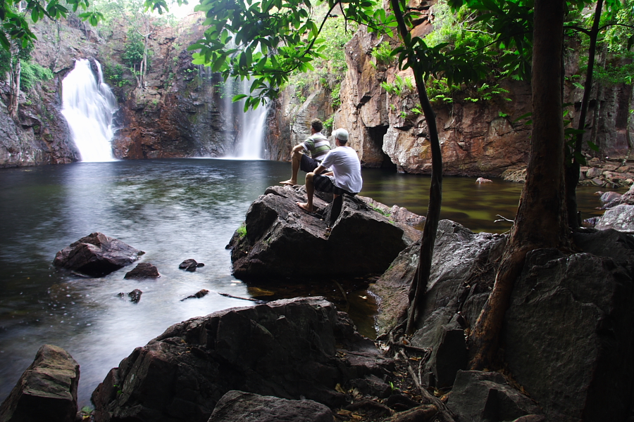 Two guys, a swimming hole and a waterfall - peaceful, pristine, perfect
