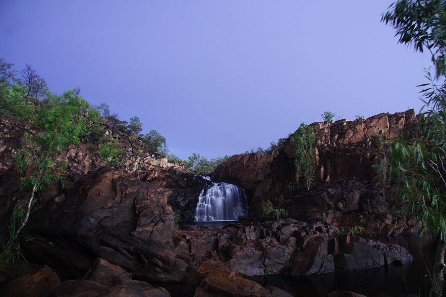 Edith Falls top pool right on dark - I *just* missed an AWESOME crawler across the top of the fals here