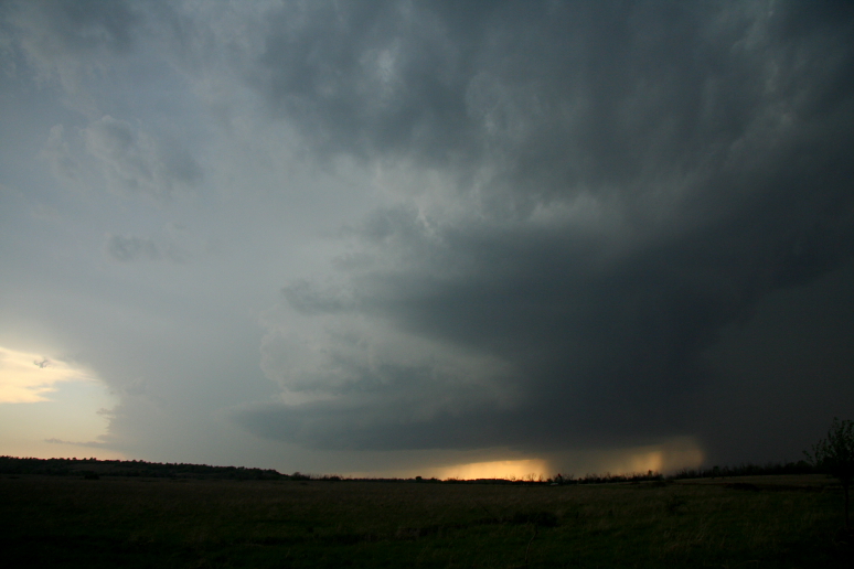 First storm of the day in the foreground with next storm off to the south west behind it. Near Buxton, Kansas.