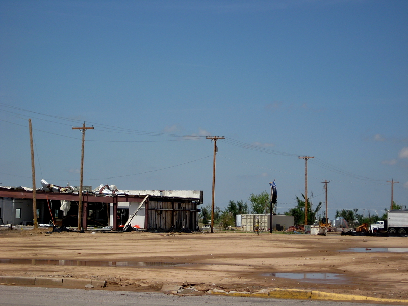 Whilst most have been cleared away, there are still some damaged buildings around town.
