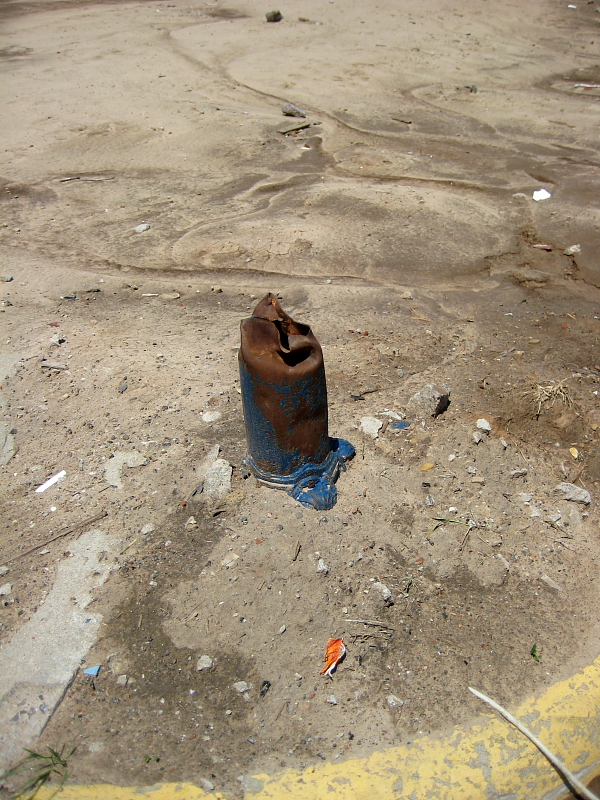 This is the base of a steel street light pole that was snapped off by the tornado.