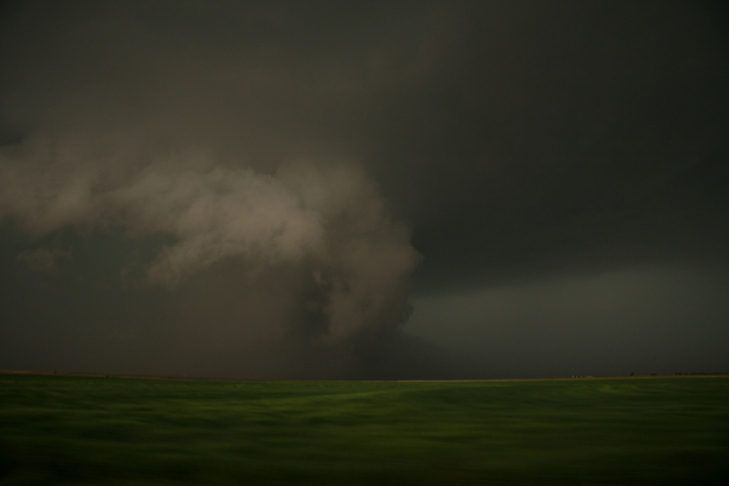 Parallelling the wall cloud after getting very close S of Grainfield, Kansas.