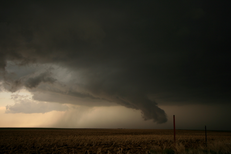 The RFD cuts in and a near textbook clear slot develops. The scud under the base had already started rotating. Near Gove, Kansas.