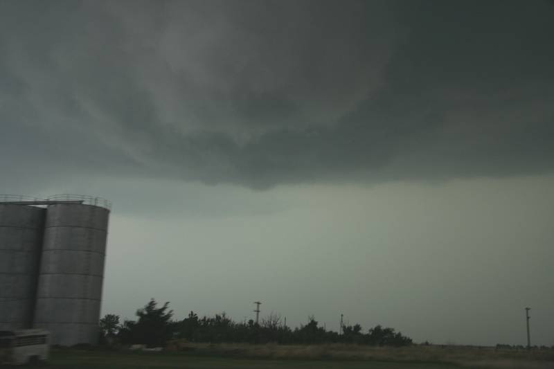 As this wall cloud dissipated, we had to move north and east and as we turned east, a new wall cloud developed overhead and was rotating rapidly! It put down a brief tornado JUST to our north east - it was no more than 1/2 mile away!! This photo is the wall cloud as we turned east almost directly above our heads. Close call!