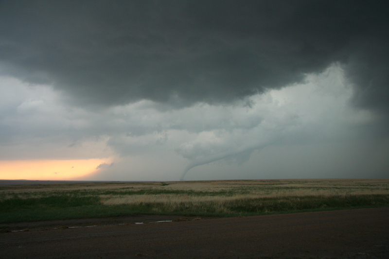 It was quite a nice scene from where we were with the pink hue on the sky to the west and then a tornado ripping up the land in the foreground.
