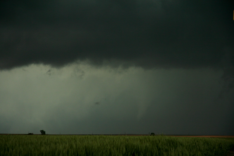 As the rain cleared off to the north, we could see a rapidly rotating wall cloud in the distance. A large funnel cloud can be seen here.