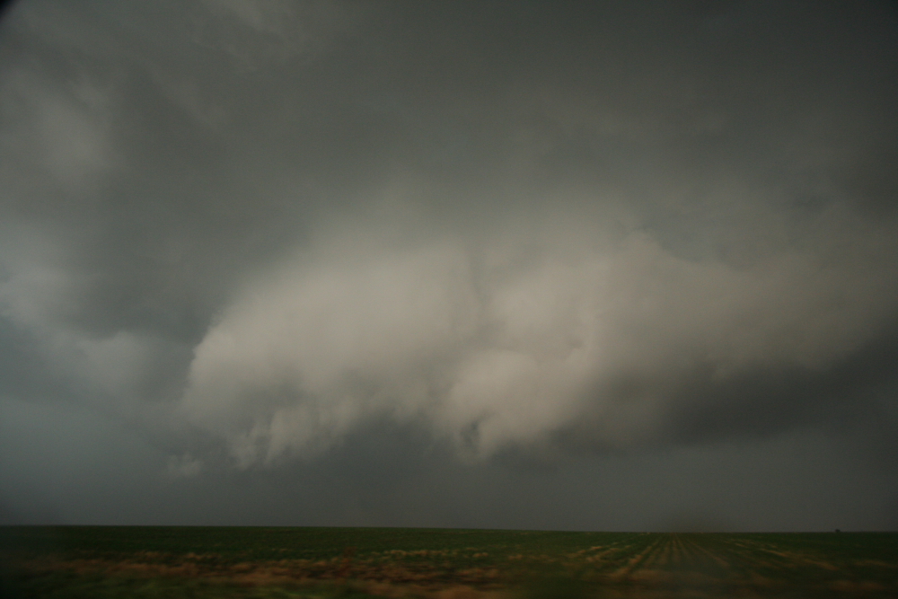 The wall cloud just after it crossed Hwy 183 about 6mi south of Greensburg, Kansas